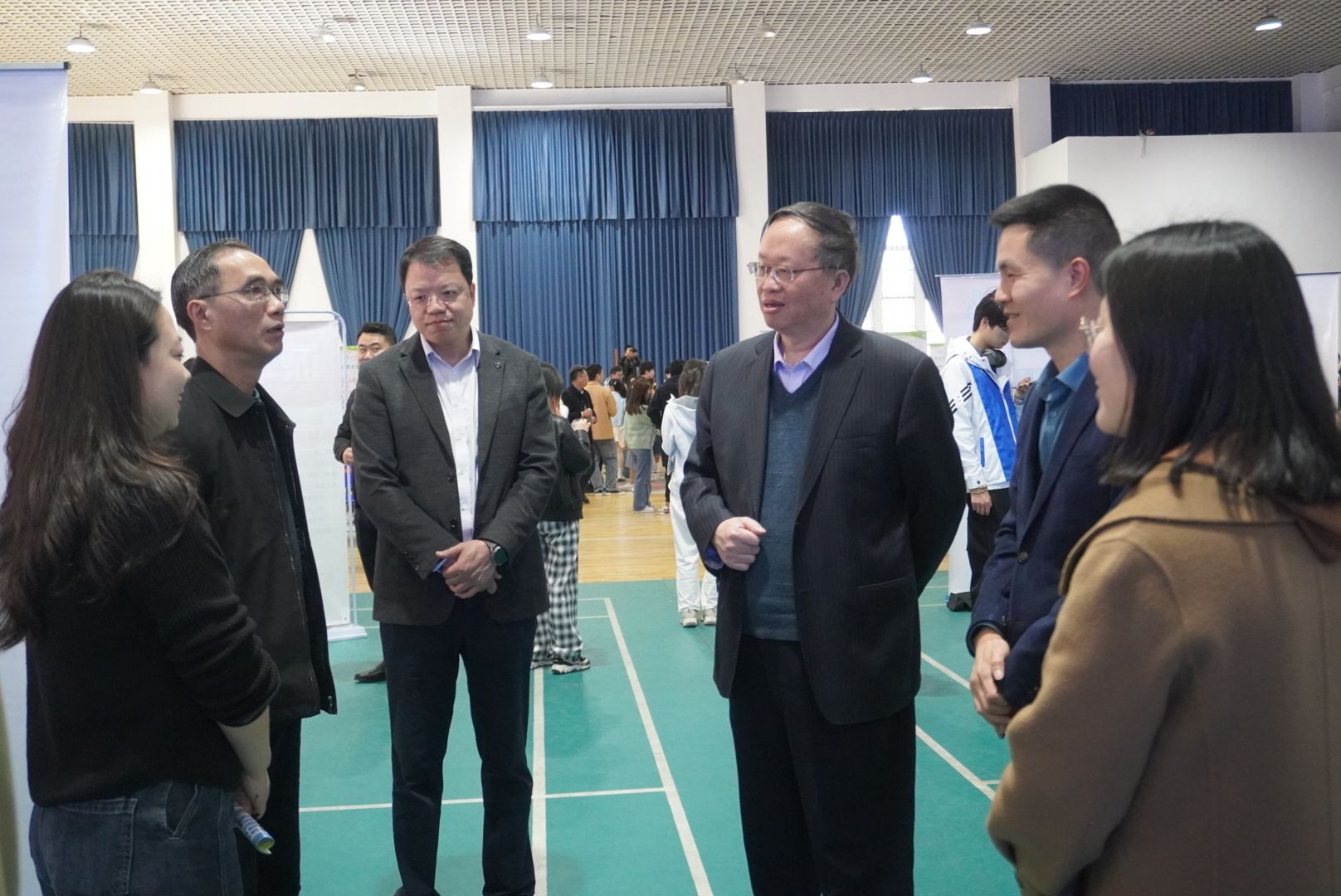 图为校领导亲临91UBER展区与院领导交流就业工作
