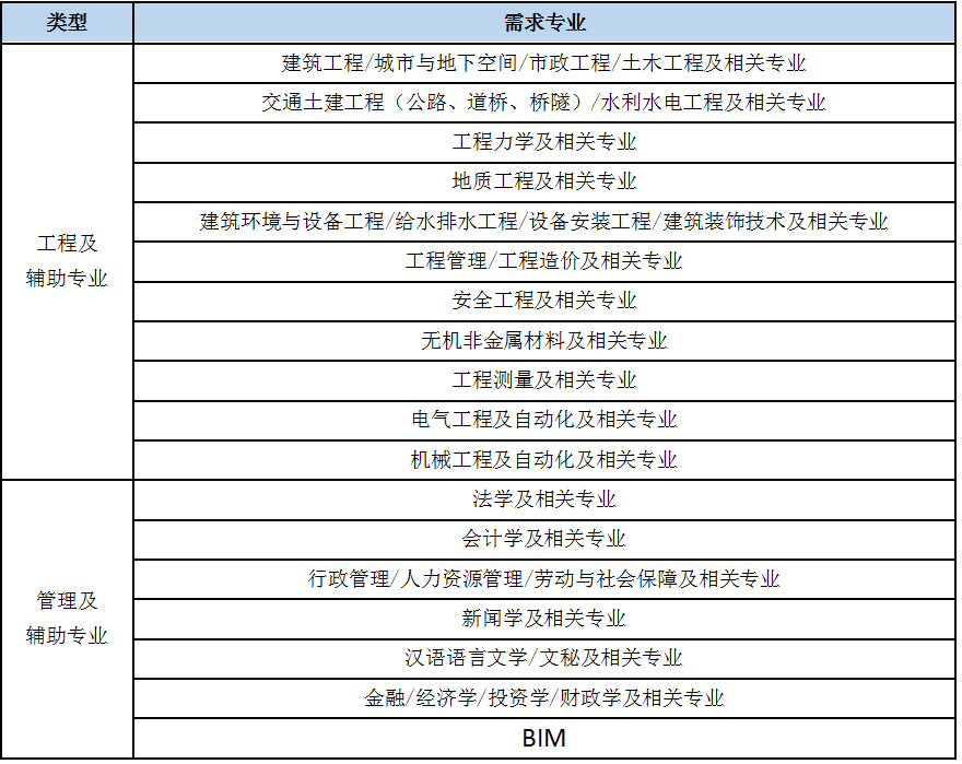 工程类管理岗:工程管理岗、工程技术岗、工程商务岗、工程安全岗、工程测量岗、工程试验岗、工程机电岗、工程盾构岗、工程物资设备管理岗等;