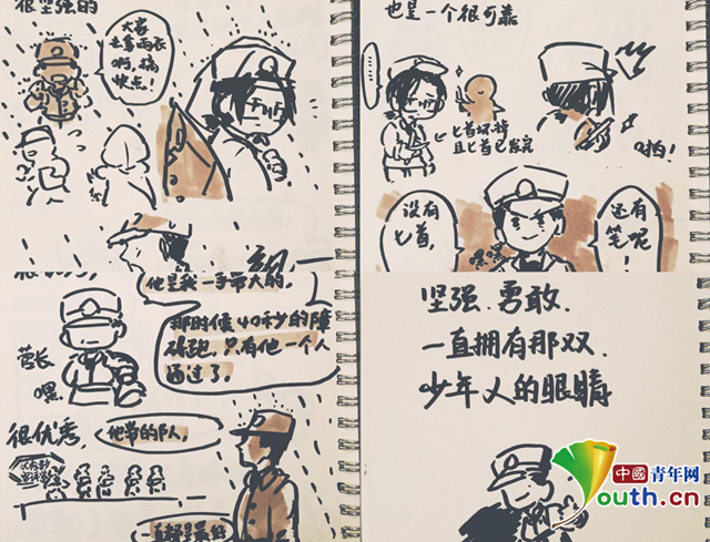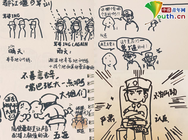 图为梁舒彤专为教官创作的部分漫画。中国青年网通讯员张珑潆提供