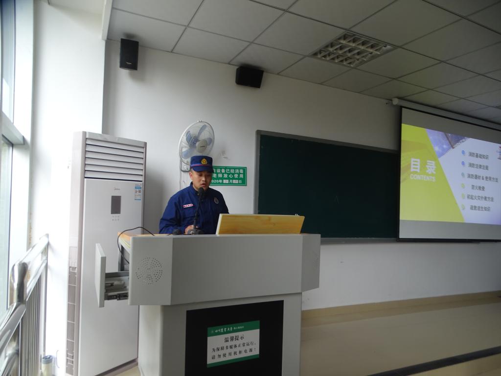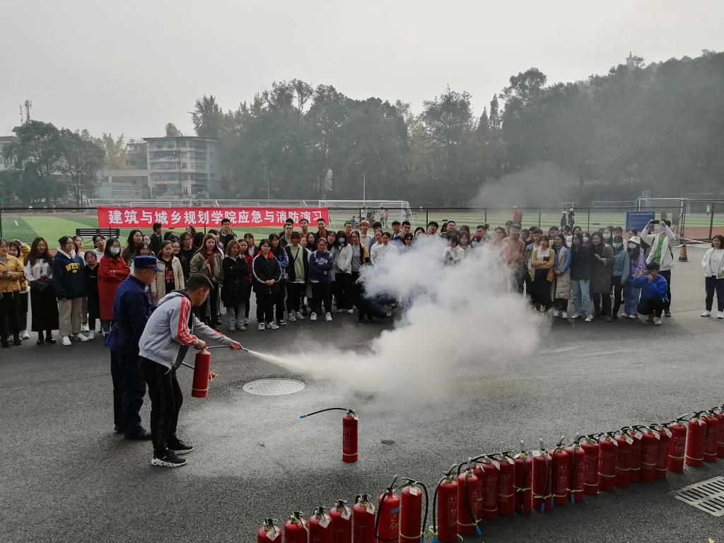在2A503组织开展了 “消防安全知识培训暨应急疏散及灭火演练活动”,都江堰市西川消防中队、院领导班子、校区保卫部及各系室师生共计一百三十余人参加。