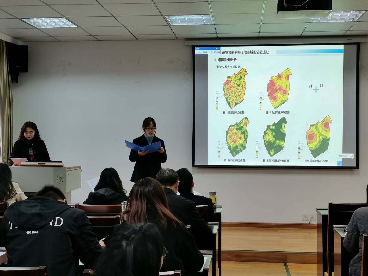 在答辩中,各团队成员团结协作,充分展现了项目的先进性、创新性以及团队的风采,现在评审老师提问切中要害,对参赛作品严规格、高要求评判,并对团队给出宝贵的意见与建议。经过团队激烈的角逐和评委老师们慎重的商榷,本次大赛推选出四项作品,分别是:《疫情视角下基于应急响应能力的防疫物资调度优化模型研究》、《高海拔铁路隧道紧急救援站人员疏散特征及规律研究》、《川西北高山峡谷地区传统村落民居室内热环境优化策略的研究——以嘉绒藏式民居为例》、《传统羌族聚落色彩质量评价与量化分析——以茂县黑虎羌寨为例》。