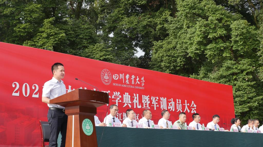新生以小班为单位身着军训服,佩戴校徽准时到场。会议上,学校领导朱占元向各位新生总体介绍了川农大都江堰校区,并概述了2021级新生录取情况。紧接着,教师代表侯超平为各位新生描绘了大学四年的发展蓝图,激励各位同学积极进取,脚踏实地,奋勇争先。最后,本次军训总指挥刘川总司令,也在大会上对即将参与军训的同学提出具体训练要求。