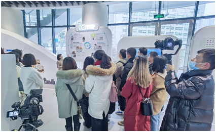 在省建科院一楼展厅,由建科院何婉艺老师为同学们讲解了关于建科院科技楼作为既有建筑的绿色改造设计思路及改造技术。作为西南地区第一个既有建筑绿色改造三星级运行标识项目,科技楼在改造过程中深入分析了建筑现状的基础,结合新的使用需求,以绿色节能为核心,探索出了一条适合夏热冬冷地区既有公共建筑可持续发展的绿色改造之路。
