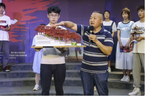的专业老师廖勇超手工制作的建筑模型更是惊艳了现场,生动的讲解让现场的师生了解到中国的建筑特点及都江堰的建筑之美,体现出中国工匠智慧和建城师生的工匠精神。