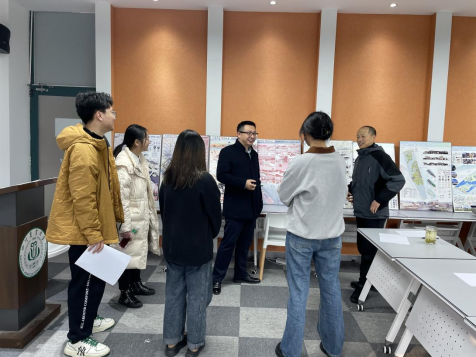 竞赛由建筑系陈川老师主持,崇庆街道党工委委员、办事处副主任萧钧铭,崇庆街道社区发展办主任丁亚军、崇庆街道办事处工作人员吴锐钦、成都市游道建筑工程设计有限公司总建筑师阙龙开、建筑系教师侯超平、陈川担任评委。进入决赛的12个参赛小组以方案文本与方案展板的形式进行设计方案成果展示,遵循居民需求与场地特色,详实汇报了地块现状与规划设计及相应策略,赢得现场评委组与现场参会同学的高度认可。本次汇报沿用投标评分制,评委组独立评分并对相应方案提出建议,客观公正评选优秀规划设计方案。