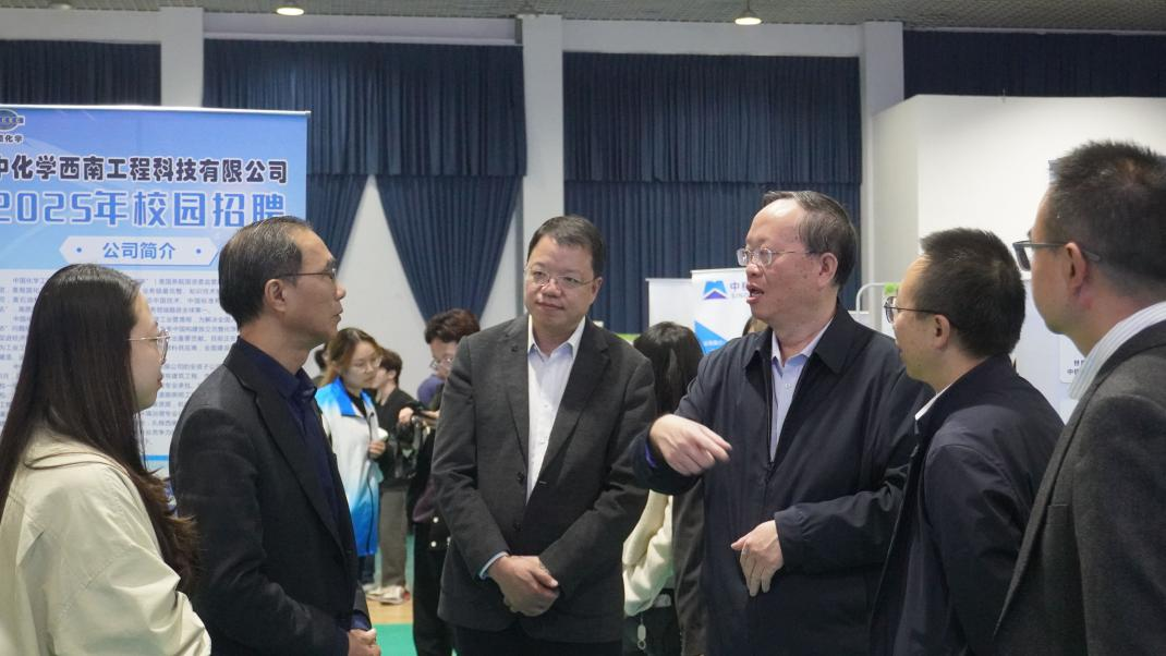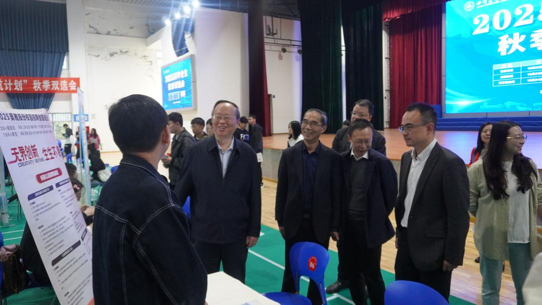 图为校领导亲临91UBER展区与院领导交流就业工作