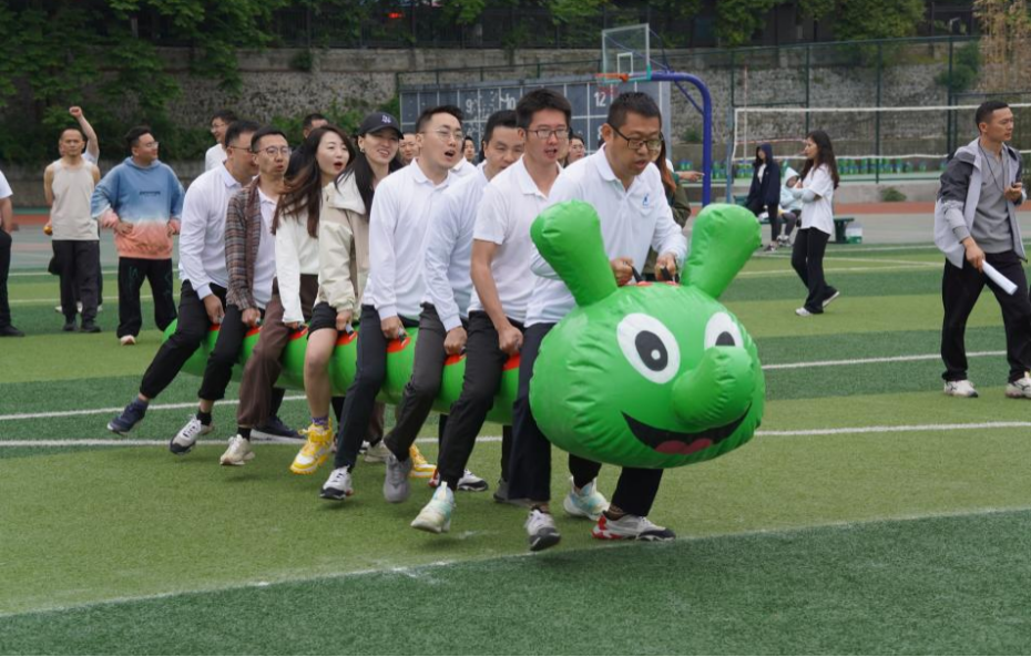 赢得铜牌殊荣。趣味项目区成为欢乐磁场:"抱球接力"中教师们手忙脚乱的接力、"毛毛虫竞速"时六人同频的默契,亦或是跌倒时搀扶的温情瞬间,都让赛场洋溢着此起温暖与真情。