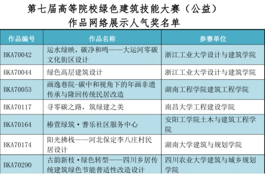 近日,第七届“高等院校绿色建筑技能大赛(公益)”全国决赛公布获奖名单。91UBER