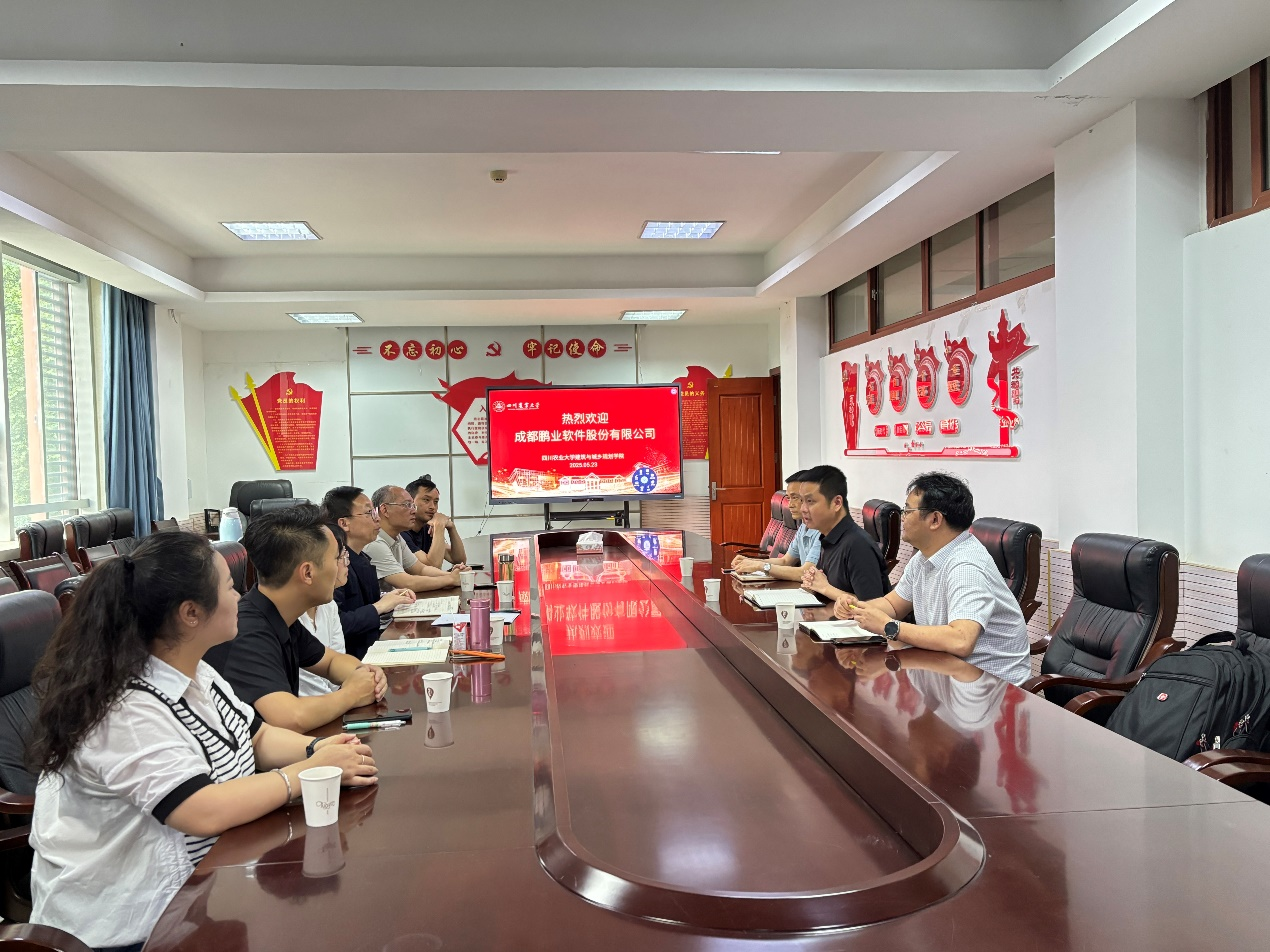 与成都鹏业软件股份有限公司在都江堰校区5409会议室举行校企合作签约暨授牌仪式。此次合作标志着双方将在教学实践、人才培养和产教融合等多个方面深入合作,共同打造“教学实践基地”和“人才培养基地”。
