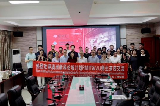 专业,蒲波还生动推介了成都、都江堰的文化与名胜,期待增进交流互鉴。澳方领队、RMIT的杜桑老师感谢川农大的接待,介绍了RMIT和VU的发展近况、专业特色,分享了在国际教育、科研创新及人才培养方面的经验,表达了加强校际合作的意愿。