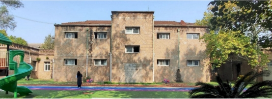 同学们站在被称为“小天安门”的交泰小学门前,感受着石材堆砌而成的建筑的宏伟。二十世纪六七十年代,交泰小学还是当地唯一的百货大楼,售卖服装、生活用品,直到九十年代改建为小学,主楼为交泰幼儿园,至今仍在使用,仅有一个教学班。走在操场上,触摸着石墙,同学们仿佛看见了当年孩子们在此的学习生活。历史与现在,在建筑的旋律中交织成绚丽的时空画卷。