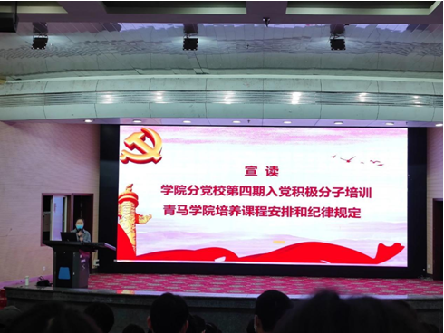 第四期入党积极分子培训开班仪式在图书馆报告厅举行,随后在这里进行了为期两周的入党积极分子培训学习教育活动。参与本次培训的入党积极分子共有67人,培训包括五个专题培训、小组讨论,主题实践活动和结业考试等流程。