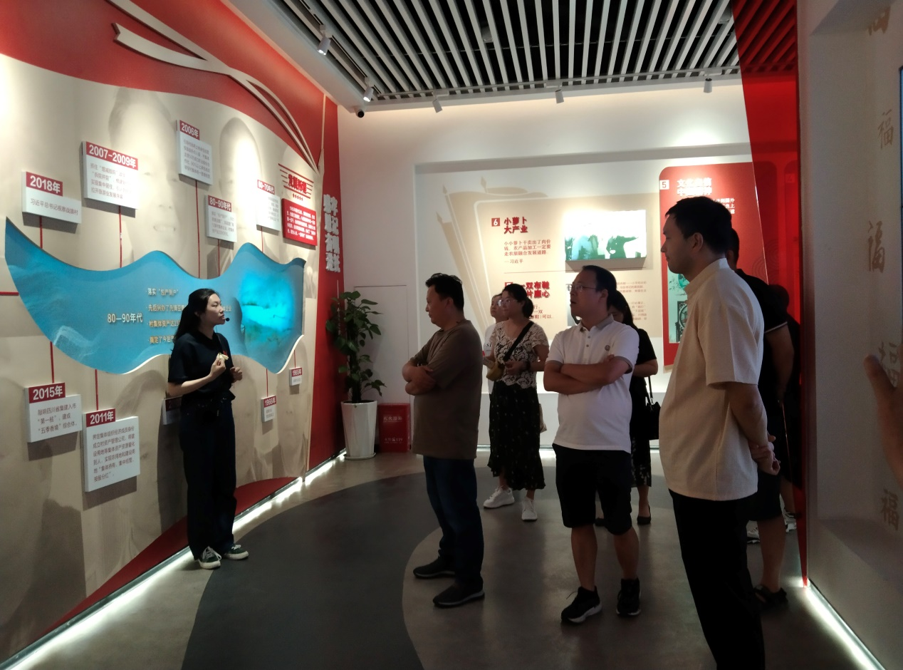 战旗村是四川省乡村振兴示范村,习近平总书记称赞其“战旗飘飘,名副其实”,并嘱托战旗村要在乡村振兴中继续“走在前列,起好示范”。支部党员沿着习近平总书记考察战旗村的路线,先后走访初心馆、乡村十八坊、特色产业园、村史馆等地,通过详实的图文及实物资料,详细了解了战旗村的发展历史和产业布局,实地感受战旗村乡村振兴战略发展建设成果。在特色产业园,大家走进郫县豆瓣博物馆、十八坊、唐昌布鞋、战旗酒坊等,饶有兴致的了解了当地特色产品的生产工艺,听取了在党建引领下8位党支部书记带领村民实现共同富裕的奋斗故事。在当地村民的带领下,大家还观摩了战旗村集体规划建设的村民住房,特别是对于当地土地规划、产业组织、建设成本等进行了详细的了解,在实地走访中领略了社会主义新农村的崭新面貌。