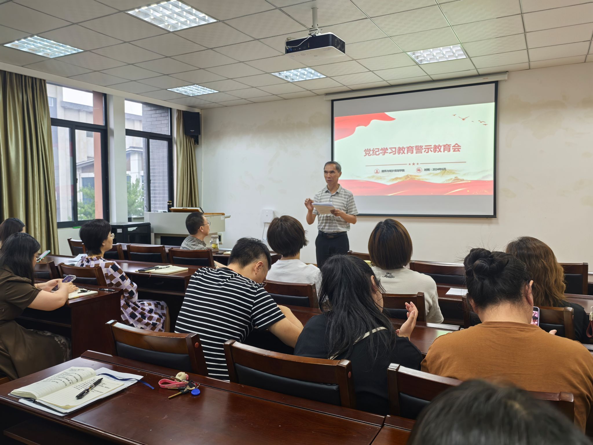党课开始前,申琼传达了学校党纪学习教育警示教育会会议精神及相关要求。申琼逐一分析解读了《中国共产党纪律处分条例》六项纪律负面清单,并结合典型案例,剖析原因,强化警示与教训。申琼还结合《新时代高校教师职业行为十项准则》等相关文件,提醒老师们结合典型案例,对照检视个人思想言行风险点,进一步深化纪法学习,强化作风建设,牢固树立立德树人思想,坚守职业底线,坚持学术诚信,严谨治学,关爱学生,以身作则。