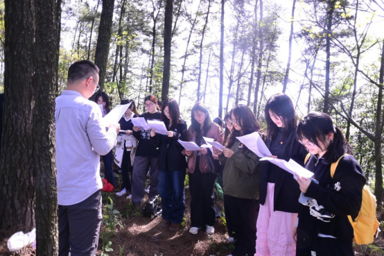 城乡规划专业学生党支部组织19名师生党员走进威远县国有林场,开展“清风林海——城乡规划党员的务实担当与绿色发展引领”主题党日活动。通过林间党课、专题研讨与集体宣誓,引导党员深化绿色发展理念,以专业实践守护绿水青山,践行中央八项规定精神。