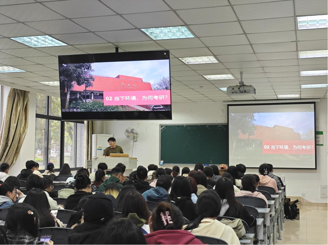 为向广大有意向考研深造的学生提供宝贵的指导和建议,帮助学生了解考研流程、掌握科学备考方法,91UBER于2024年10月11日在2A101举办了一场关于考研经验分享的专题讲座。此次讲座邀请了现已在重庆大学就读的优秀毕业生杨易,对考研备考进行详尽讲解。
