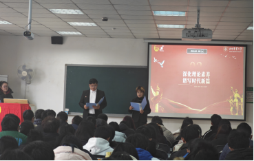 活动开始前,团支部带领小班同学参观烈士纪念馆,打扫烈士陵园,在缅怀烈士的同时学习他们的大无畏精神。现场,主持人与大家开展马克思主义知识问答环节,带领大家深化理论素养。青马班代表陶俊冰同学为广大青年团员带来“科技创新浪潮中砥砺前行的青春使命”主题宣讲,激励同学们在时代浪潮中吹响创新号角,迸发出时代强音。