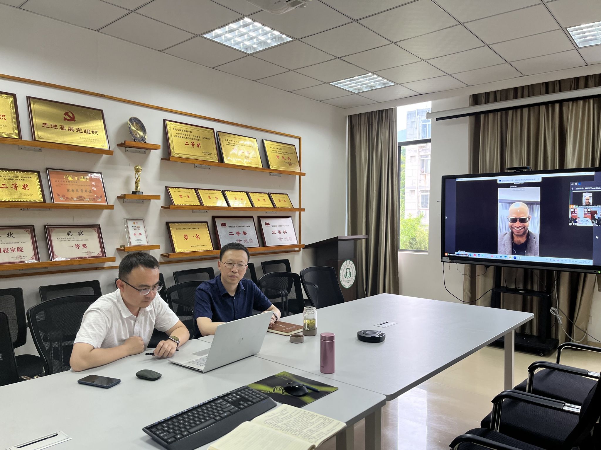 开展了外籍专家线上招聘面试。院长曹云忠、副院长张凌青、田丛珊博士、国际交流与合作中心主任魏沂轩和行政办主任张敏参加了面试环节。