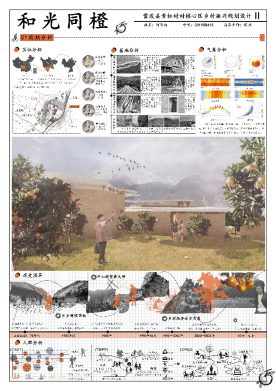 本设计回应乡村振兴政策开展调研设计。雷波县青杠村的核心区无法满足作为乡村核心区的基本功能需求,因此规划设计新的活力核心显得非常重要。本次设计,以“活力聚点”为主题,通过提炼青杠村脐橙业态,梳理村落肌理,以散落式布局将新旧建筑有机结合,以重塑青杠村风貌,活化脐橙产业,满足游客与村民的需求。